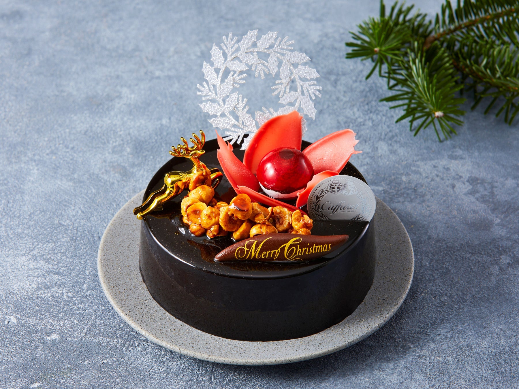 ピエール マルコリーニのオリジナルクーベルチュールを使った濃厚な「ムース ショコラ コンコルド」に「クレーム ダマンド マロン カシス」を重ねました。カカオの豊かなアロマとビターチョコレートの苦みに、カシスの酸味、マロンの風味がバランスよく調和し「メレンゲ カカオ」と「クレーム ダマンド」の歯応えが絶妙なコンビネーション。鮮やかな赤いデコレーションの上には雪の結晶を象ったオーナメント。聖なる夜を華やかに彩る、ピエール マルコリーニならではのクリスマスケーキです。