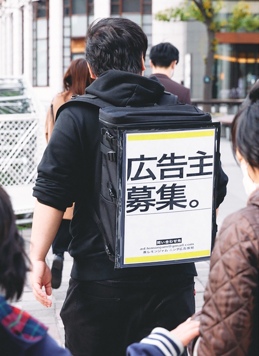 ニシダ・アドとは、ラランドのニシダさんが普段背負っているリュックサックに、広告を掲出できるサービスです。