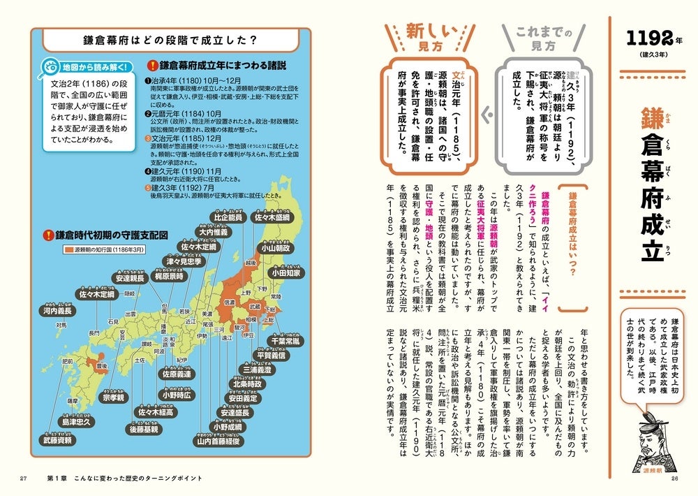 近年、新たな史料の発見あるいは研究の成果により、従来の日本史観を見直す動きが見られるようになり、「ここまで変わった日本史」というテーマに注目が集まっています。学校で使用される教科書においても従来史実とされたことが訂正されることもしばしばで、お子さんから「今はイイクニ作ろうじゃないよ」と指摘された方も多いのでは?そうした中、本書は古代から現代までの通史において、これまでの通説に新しい解釈が加えられた歴史の事象の中から特に知っておきたいものを選りすぐり、各事象・新史実についてイラストや写真を交えながらわかりやすく解説。あなたの歴史常識を上書きする一冊です。