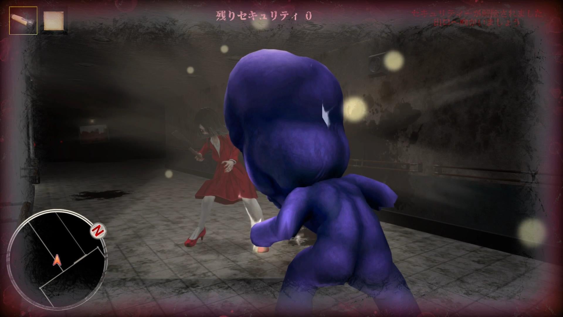 院内を散策していると青色の化け物「青鬼」に遭遇、青鬼が落としたマスクを触ると病院が路地に変化し、