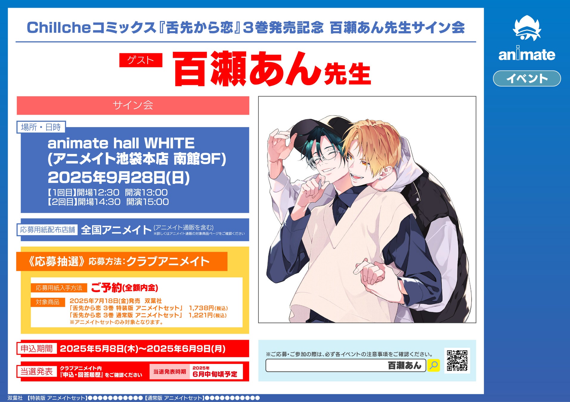 【『舌先から恋③』発売記念 百瀬あん先生サイン会】
