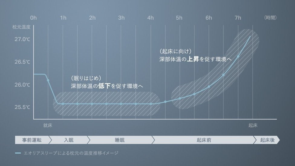- 入眠時は深部体温の低下を促し、起床前は深部体温の上昇を促す