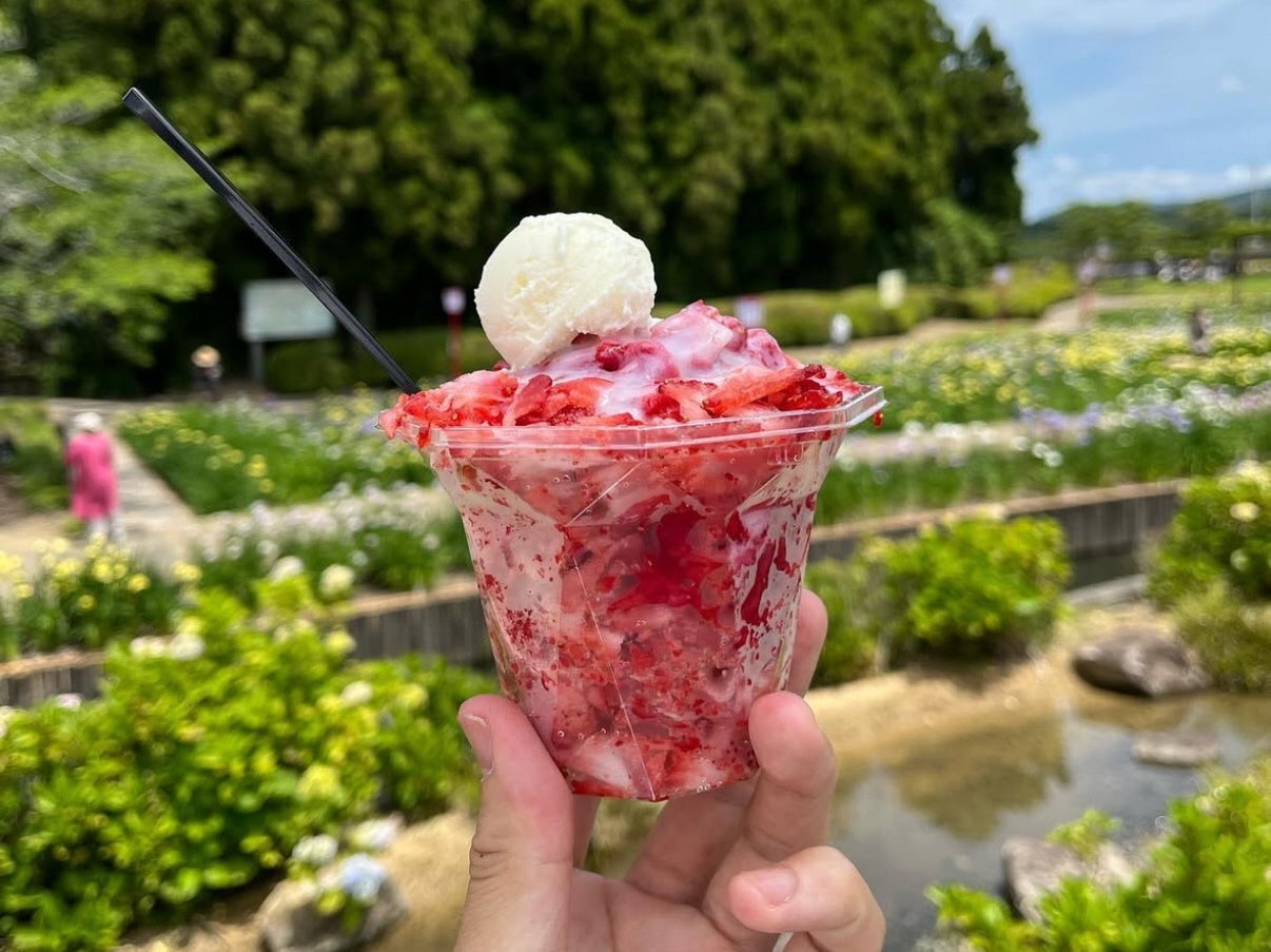また、かも農園の新名物、いちごをたっぷりと使ったひんやり絶品スイーツ「削りいちご」も販売されます。