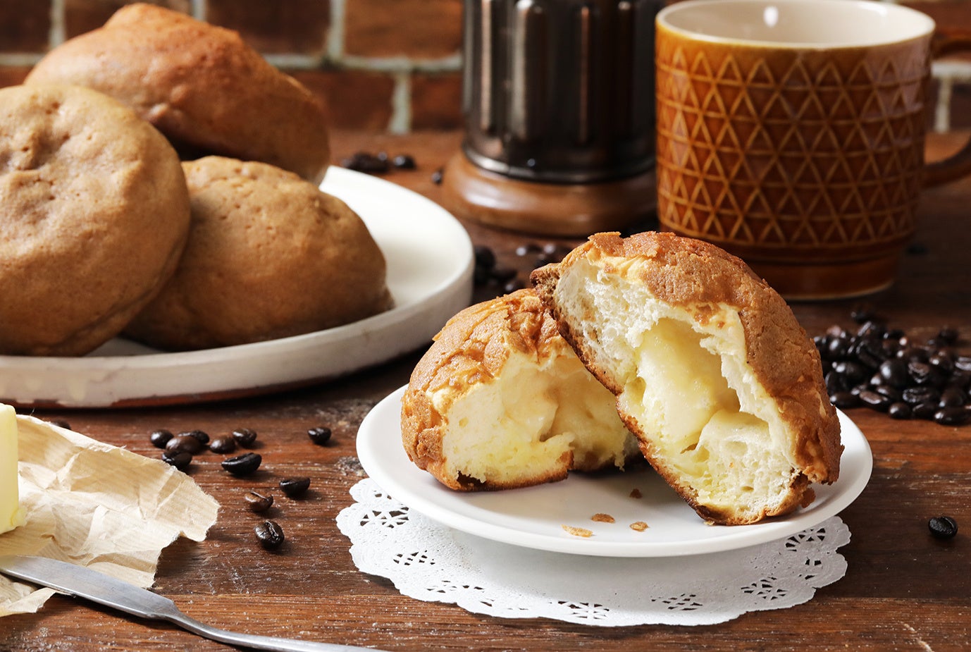 ・有塩バターを包んだ生地にコーヒーの入ったメロン生地を絞り焼き上げました。