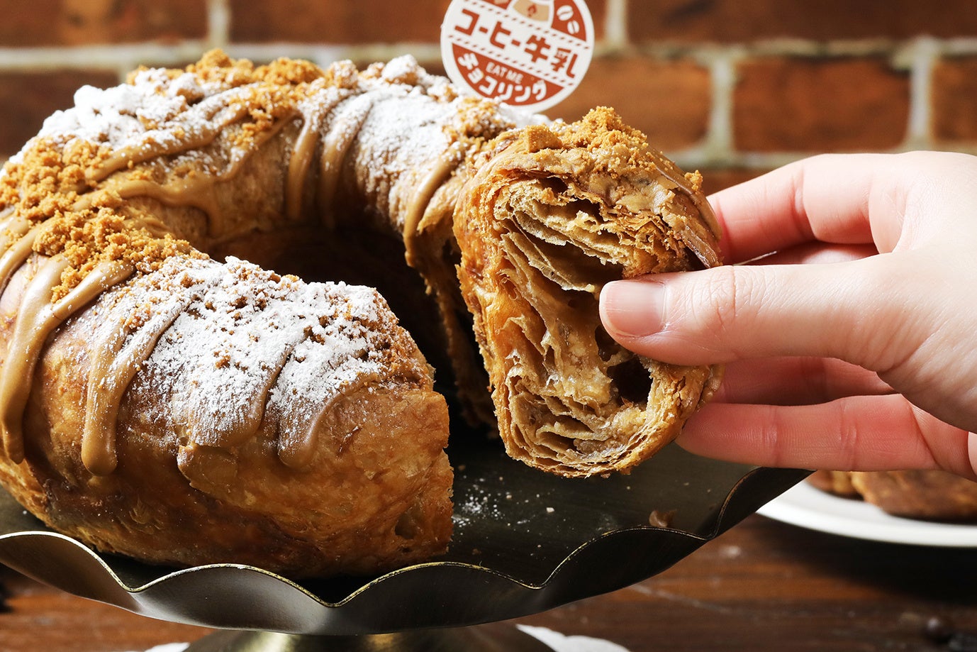 ・コーヒーの心地よい苦味とホワイトチョコの甘味がまろやかに絡み、まるでコーヒー牛乳のような味わい。カラメルビスケットのクランブルがふんわり、全体を包み込んでくれます。外はパリッと中はしっとり。デニッシュの食感とともに、コーヒーの風味が口いっぱいに香るチョコリングです。