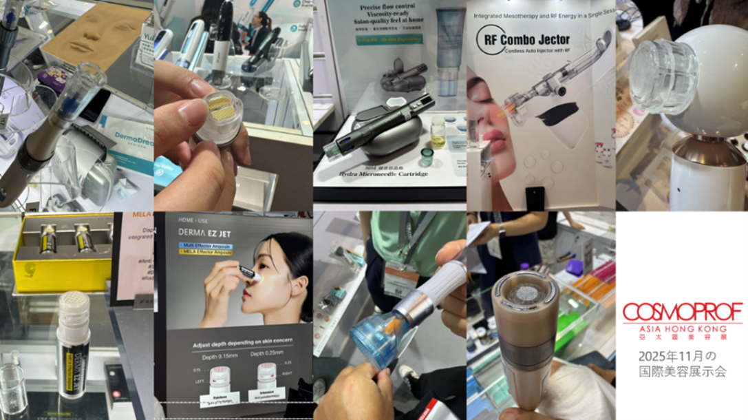 2025年11月に香港で開催された美容製品の展示会「COSMO PROF ASIA 2025」においてもニードルを活用した各社のアイテム群の存在感は一際大きく、2026年もっとも盛り上がる美容カテゴリーのひとつと言っても良いかもしれません。
