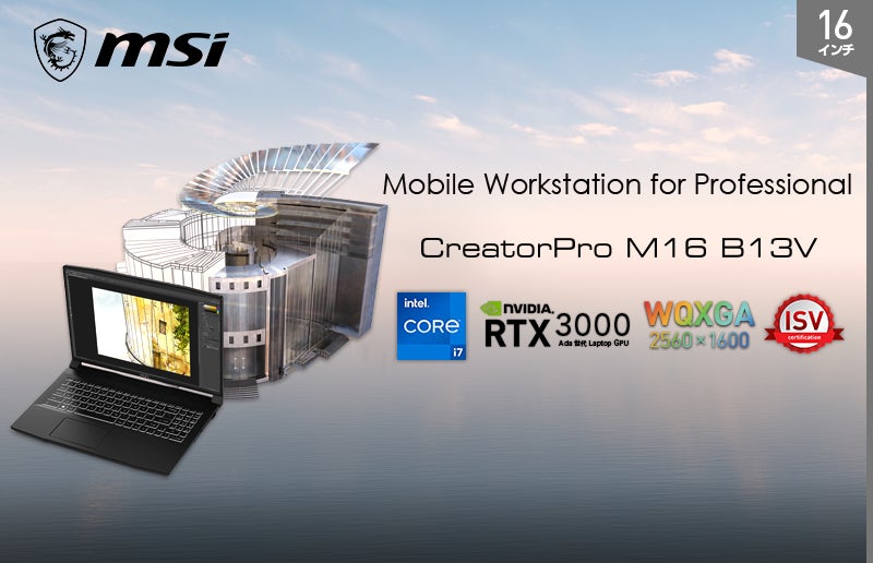 ・CreatorPro M16 B13V 製品ページ:https://jp.msi.com/Content-Creation/CreatorPro-M16-B13VX