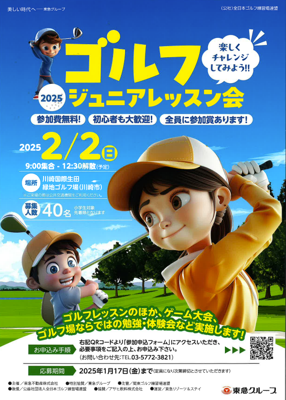 初心者大歓迎!楽しみながら学ぶ「ゴルフジュニアレッスン会」 川崎国際生田緑地ゴルフ場にて 2 月 2 日(日)に開催