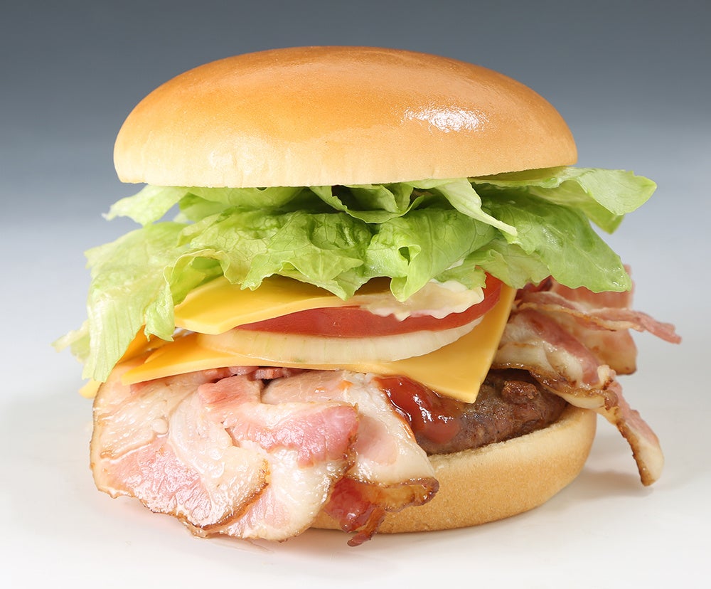 自家製パティは、黒毛和牛100%!相性抜群のベーコンとチーズを特別に増量。