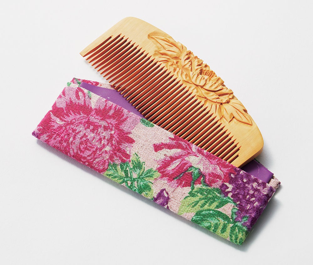 薩摩つげ櫛 芍薬柄(手作り布ケース付)(約10.5cm/つげ材/鹿児島県産) 11,330円(2点限り)