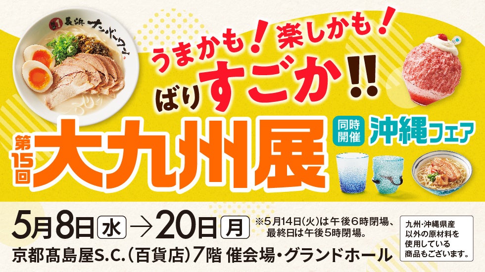 【京都高島屋】うまかも!楽しかも!ばりすごか!!「第15回 大九州展 【同時開催】沖縄フェア」を7階催会場・グランドホールで5月8日(水)から開催!