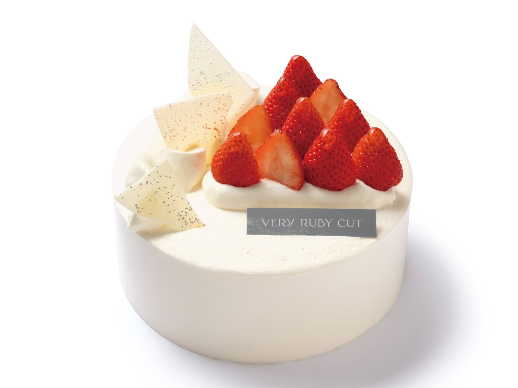 香り高い国産苺で真っ赤なツリーを描き、フレッシュ苺をぎっしりはさんだVERY RUBY CUTらしい一品。ジューシーな苺果汁と美味しくとろけ合うように、自然な甘みとしっかりしたミルク感が特徴のホイップクリームを絞りました。
