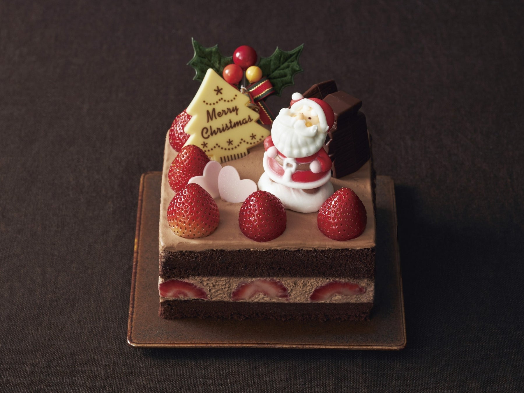 サンタクロースを飾った可愛らしいケーキです。ベルギー産チョコレートを使用し、苺の酸味との相性が抜群のチョコレートケーキです。