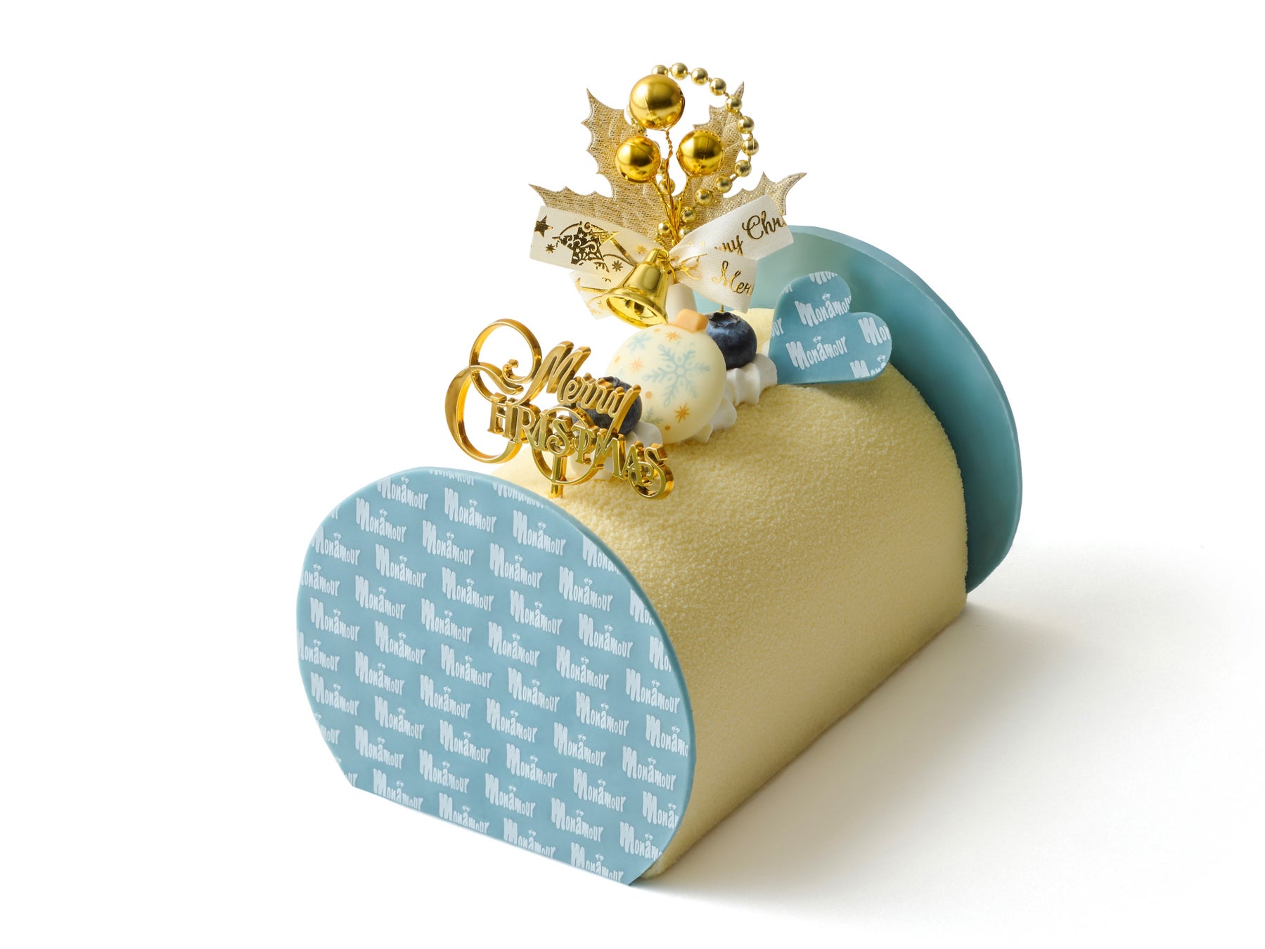 北海道産フレッシュクリームを使用して仕上げたレアチーズケーキと、ブルーベリーのムースを2層にし、ブルーベリーのジュレを閉じ込めた、清涼感あふれる爽やかな味わいが魅力的な逸品です。ブルーベリーをモチーフにしたチョコレートと雪化粧したXmasをイメージしエレガントに仕上げました。