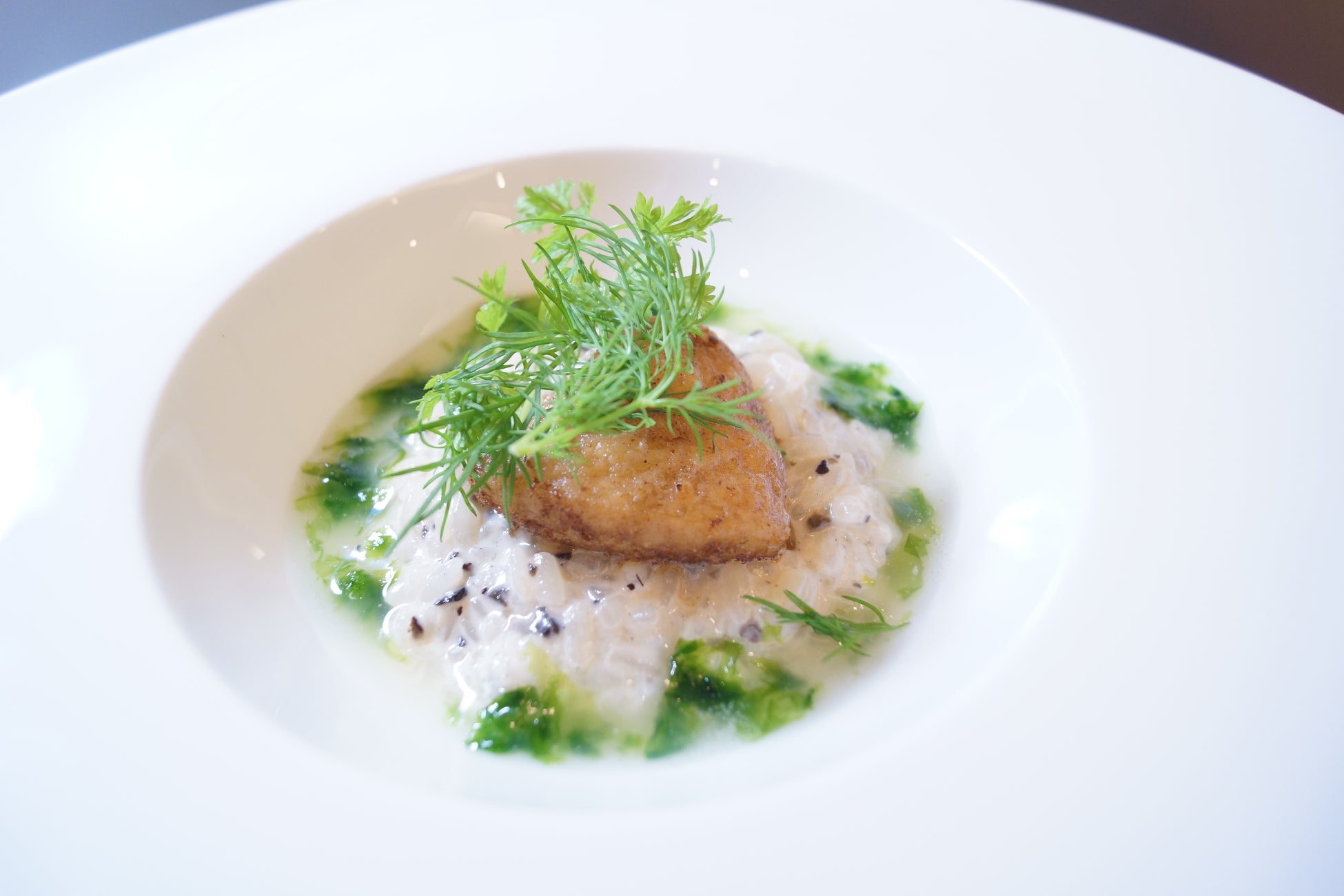 ・“いなつふぐ”白子のムニエル~トリュフリゾット添え~