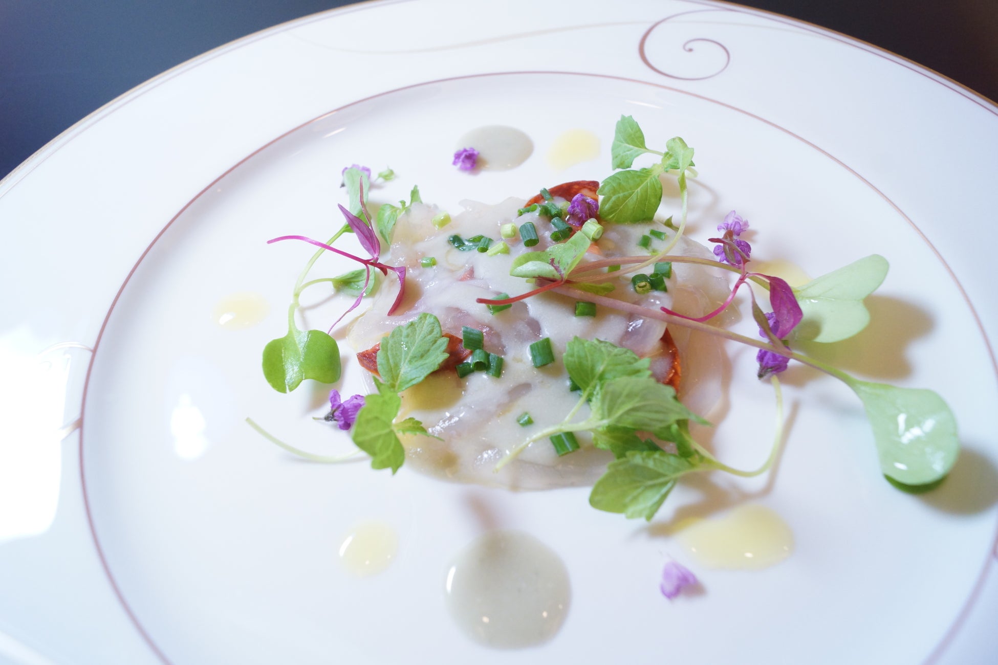 ・“いなつふぐ”のカルパッチョ仕立て~ロックフォールヴィネグレット~