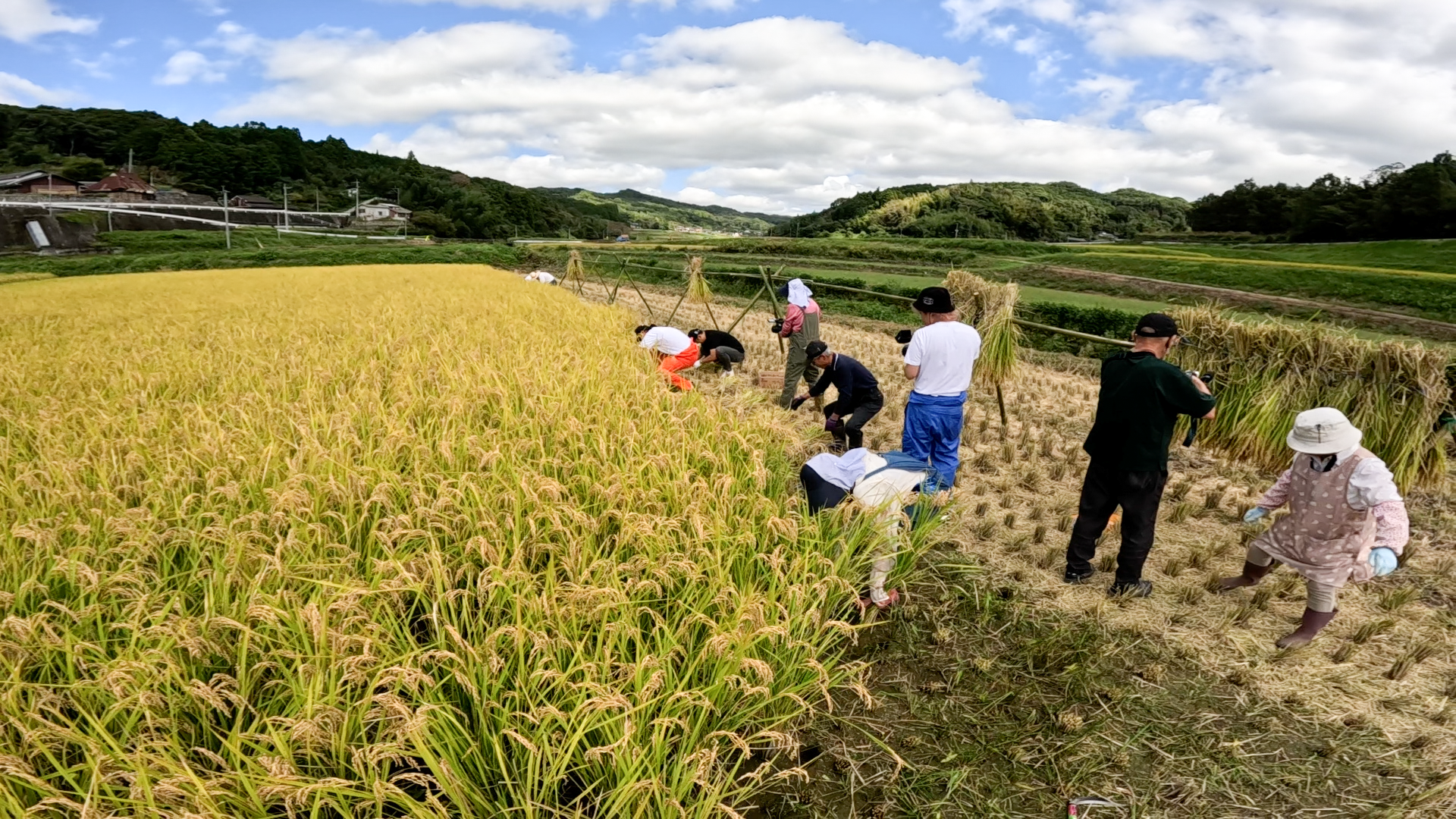 11月20日(木)よる10時からの放送では、6月に手植えした稲が立派に実り、いよいよ収穫の時を迎える、ということで田植えに続き、昔ながらの手作業での稲刈りに挑戦します。1株1株丁寧に刈り取っていく姿からは、日本の伝統的な農業スタイルへのこだわりが感じられます。