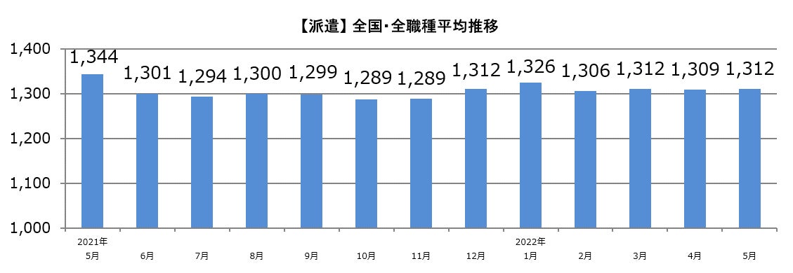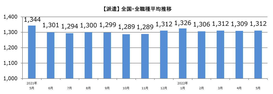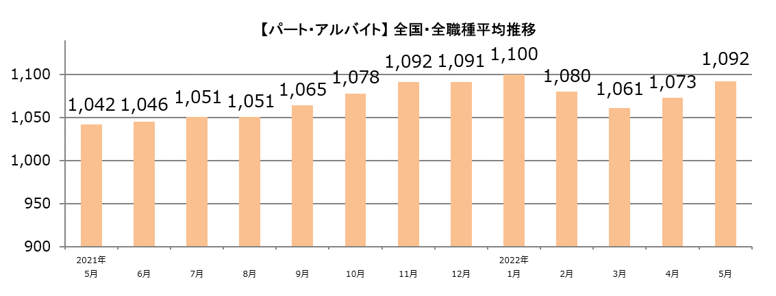 【2022年5月 主婦求人の平均時給】パート・アルバイト:『1,092円』、派遣:『1,312円』