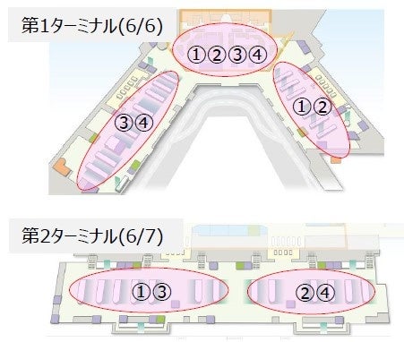 ※練り歩きエリアは両ターミナルとも出国手続き前エリアのみとなります