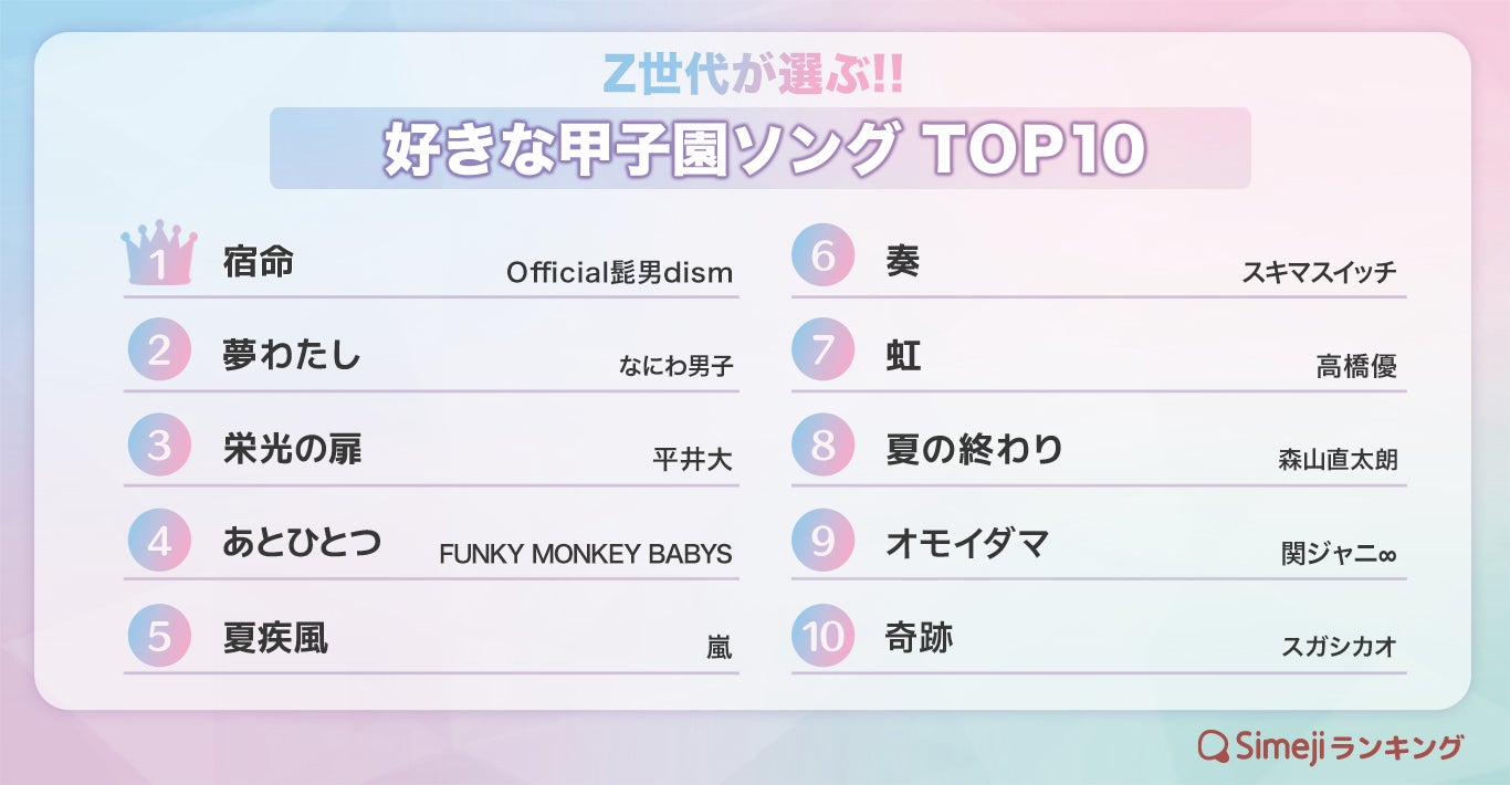 【Simejiランキング】Z世代が選ぶ!!「好きな甲子園ソングTOP10」