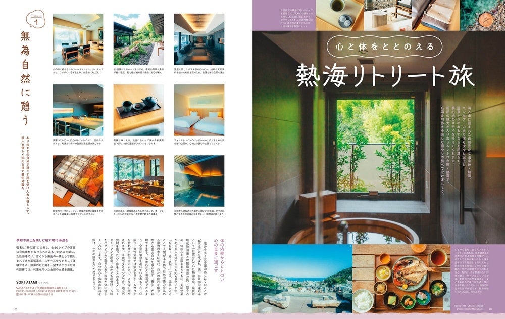 ◆海と山に囲まれた自然豊かな温泉地・熱海。塩分を多く含み湯冷めしにくいことから「熱の湯」とも呼ばれ、徳川将軍御用達の湯として一目置かれていた。美肌効果があり美人の湯としても知られる。熱海ではコンセプトのある宿が次々と誕生、温泉+α のおもてなしを用意して、夢心地のステイを叶えてくれる。新旧の魅力が入り交じるレトロな町で、名湯&町歩きを楽しむ癒やしの旅へでかけよう。(熱海)
