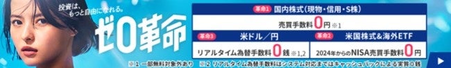 当社は、2023年9月以降、証券業界に革命を起こした「ゼロ革命」(「オンラインでの国内株式売買手数料無料(第一弾)」、「新NISAにおける米国個別株式(ADR含む)および海外ETF(米国・中国・韓国・シンガポール)売買手数料無料(第二弾)」、「米ドル/円のリアルタイム為替取引にかかる為替手数料無料(第三弾)」)をはじめ、クレジットカード積立機能、豊富な商品ラインナップ、マルチポイントサービス等についても多数のご支持をいただいています。