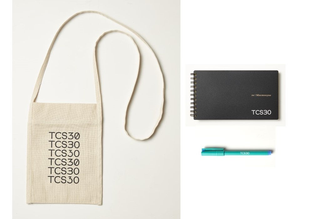 本誌のコンラン特集と連動して、今号では「The Conran Shop」日本上陸30周年を記念した「TCS30」のロゴをあしらったサコッシュ、マルマン「ニーモシネ」のノート、ぺんてるのボールペンの3点がセットになった数量限定の特別版を発売しています。いずれもエル・デコ限定でおつくりいただいた特別なアイテムとなります。