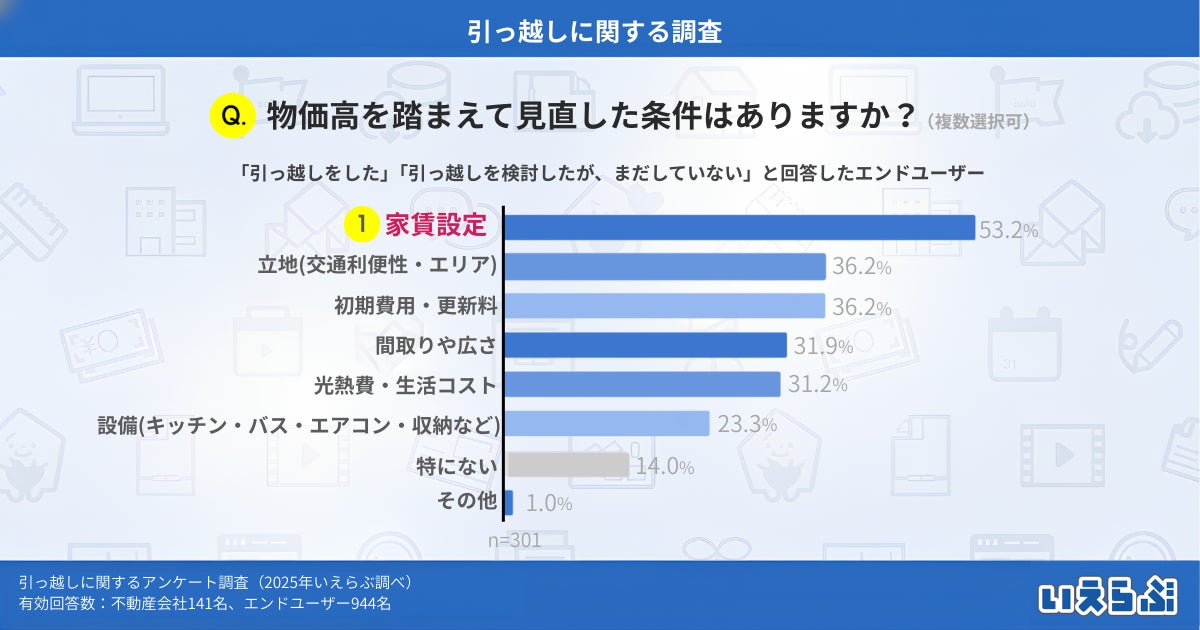 物価高で引っ越し判断に変化、約6割が「時期や条件を変更」と回答!初期費用・家賃見直しと支援ニーズが明らかに|いえらぶ調べ