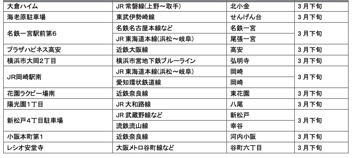 パーク24株式会社(本社:東京都品川区、社長:西川光一)は、温室効果ガスの排出量削減に繋がる移動法「パーク&ライド」および「レール&カーシェア」が可能なタイムズパーキングおよびタイムズカーステーションの2025年3月におけるオープン予定をお知らせいたします。