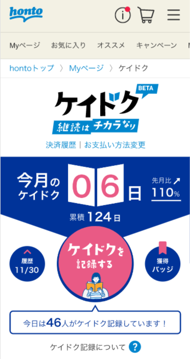 毎月、hontoポイント500円分と、honto通販の送料1回無料クーポンがもらえて、月々の本代をあらかじめ確保できます。ページをめくっただけでも記録してOK の読書記録機能で続けることが楽になります。