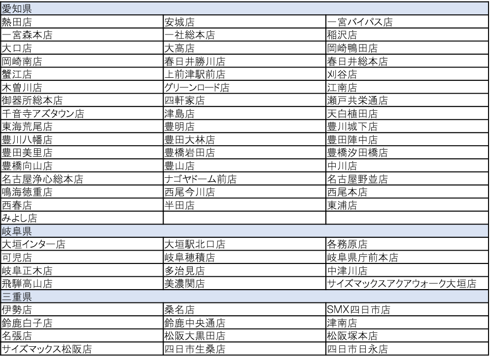 実施店舗:御器所総本店、名古屋浄心総本店など、愛知県・岐阜県・三重県の70店舗