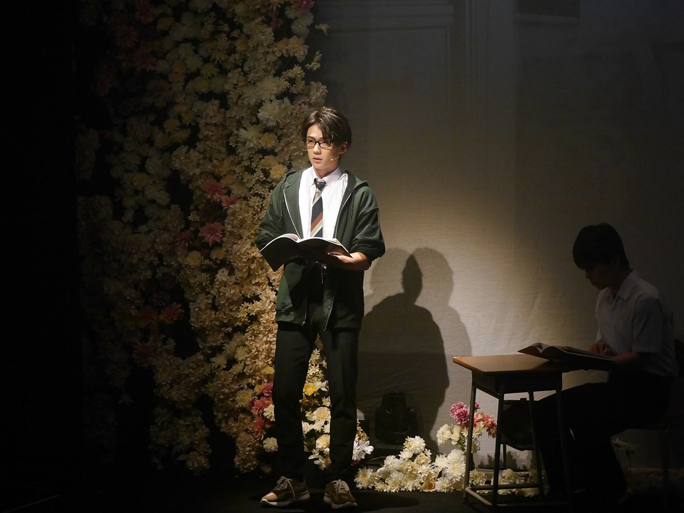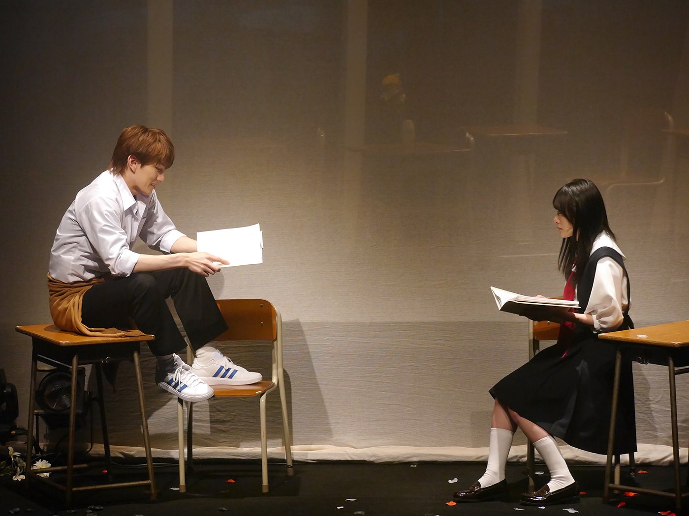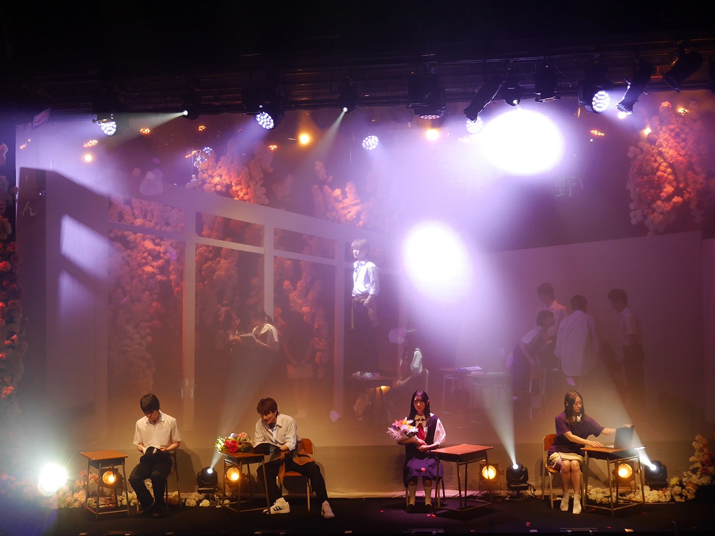 「朗読劇」でありながらも、メインキャスト陣が声と表情、時にその動きで表現する場面を、紗幕(薄手の透ける幕)の向こう側でアンサンブルがもう一人の「演者」として同じように動き、また、場面によってはクラスメートとしてお芝居をしている「演劇」も同時に見ることができるという、今までにない朗読劇になっています。