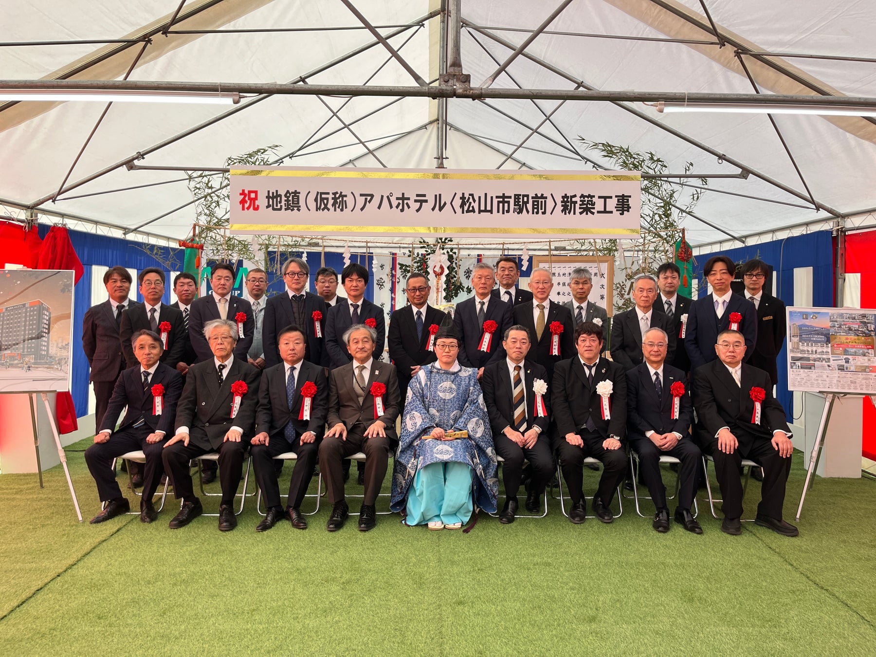 松山市内2棟目 初新築ホテル (仮称)アパホテル〈松山市駅前〉起工式開催