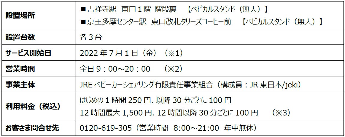 東日本旅客鉄道株式会社(本社:東京都渋谷区、代表取締役社長:深澤 祐二/以下「JR東日本」)、京王電鉄株式会社(本社:東京都多摩市、代表取締役社長:紅村 康/以下「京王電鉄」)および株式会社ジェイアール東日本企画(本社:東京都渋谷区/代表取締役社長:赤石 良治/以下「jeki」)は協働して、JR東日本およびjekiが展開する外出先でのベビーカーレンタルサービス「ベビカル」を、7月1日より京王電鉄の吉祥寺駅と京王多摩センター駅の2駅に導入します。