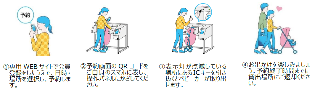 「もっと気軽に子供と外出できる社会を!」をコンセプトに、子育て世代が子供と気軽に外出できる社会の実現を目的とした、外出先でも便利に利用できる予約可能なベビーカーのレンタルサービスです。観光や旅行の際はもちろん、お買い物やランチなど短時間でも気軽にご利用いただけます。