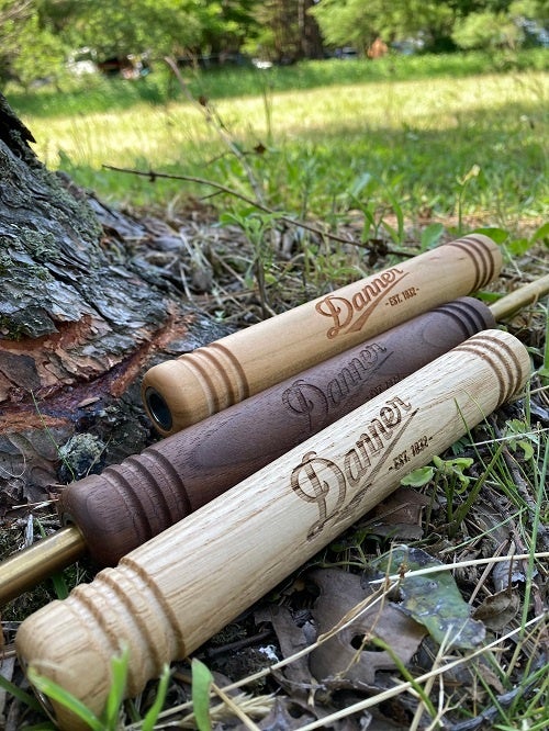 荒々しい木目が印象的な3種の天然ウッドを削り出した、火吹き棒のカスタム用グリップにダナーのロゴを焼印。火吹き棒から揃えられるよう、真鍮パーツがセットになったモデルもラインナップ。