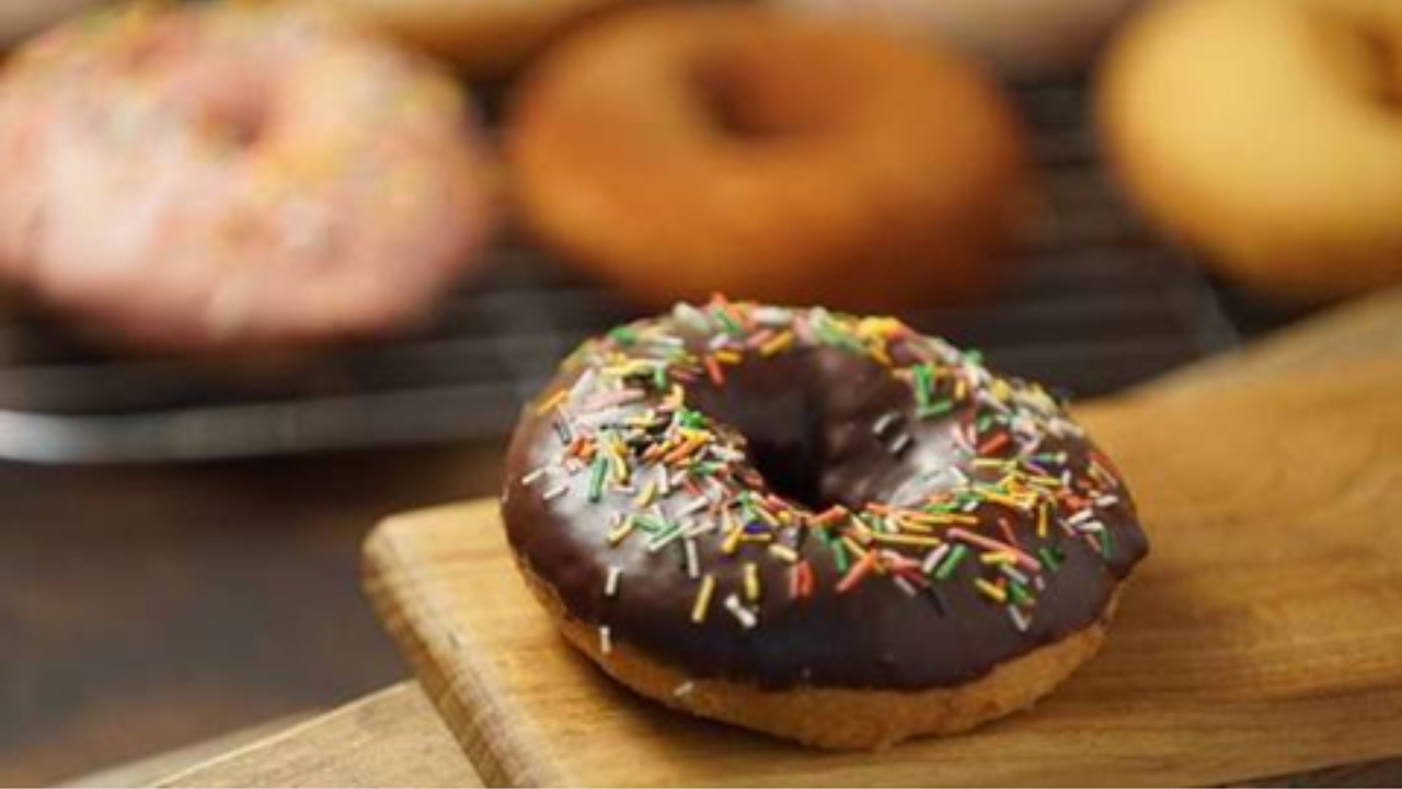 スタンダードなチョコ味にカリカリのスプレーシュガーをトッピングしてアクセントを加えたドーナツです。