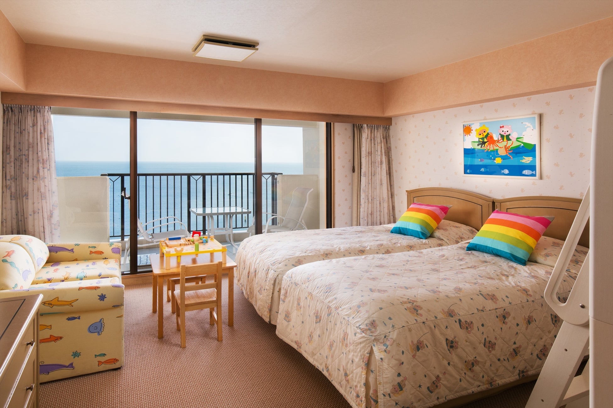 ベッドから海を見晴らせる洋室、伝統工芸の阿波藍や大谷焼、ゴッホひまわりなどのご当地アートルーム、リゾッ太コネクティングなど、旅のスタイルで選べる客室は和室スイートまで15タイプ、バルコニー付きです。