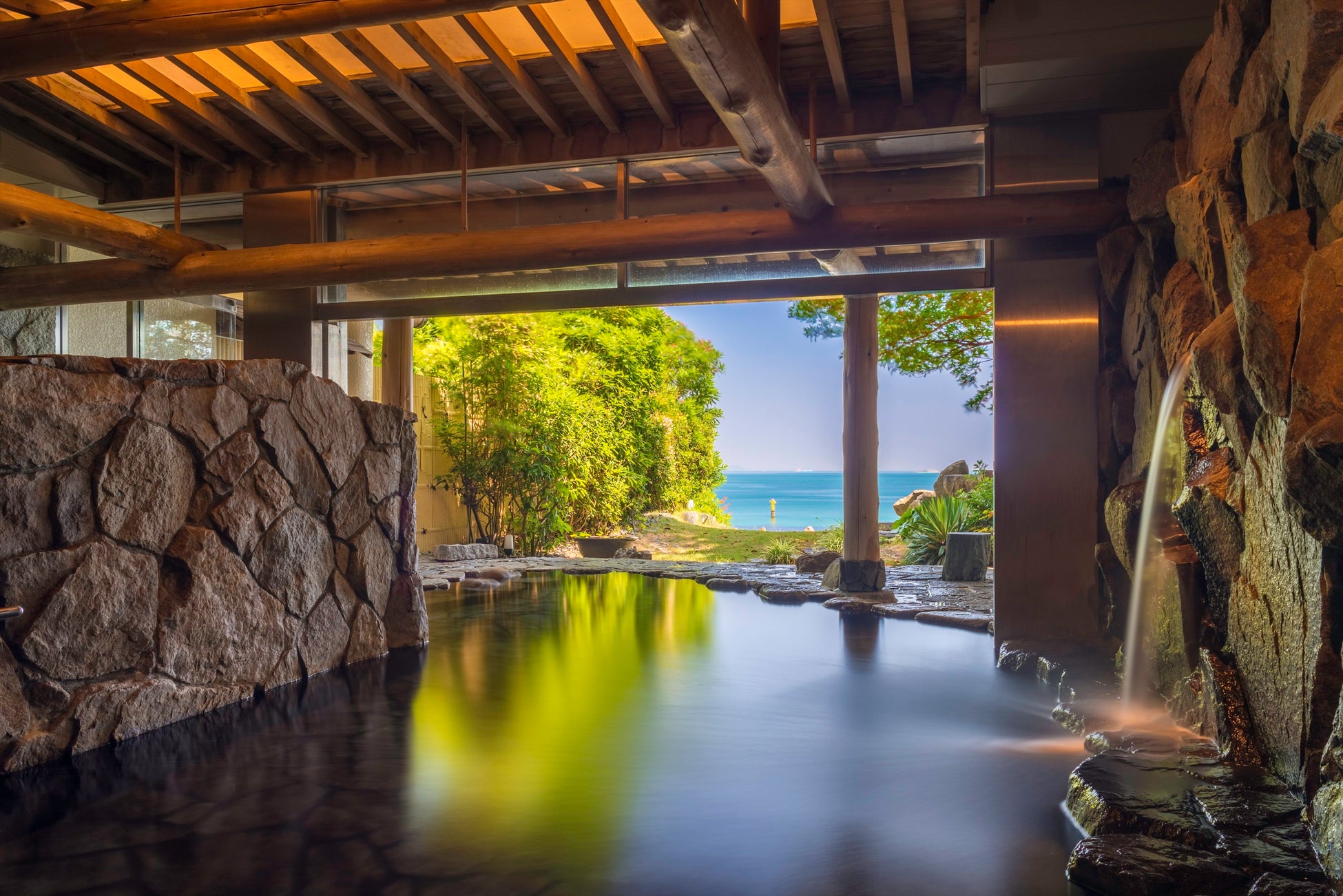 瀬戸内海国立公園内のオーシャンフロントホテル。目の前に鳴門海峡と淡路島の絶景が広がります。海に昇る朝日と満月の前後には「日本百名月」に選ばれた「鳴門ムーンロード」を一望します。