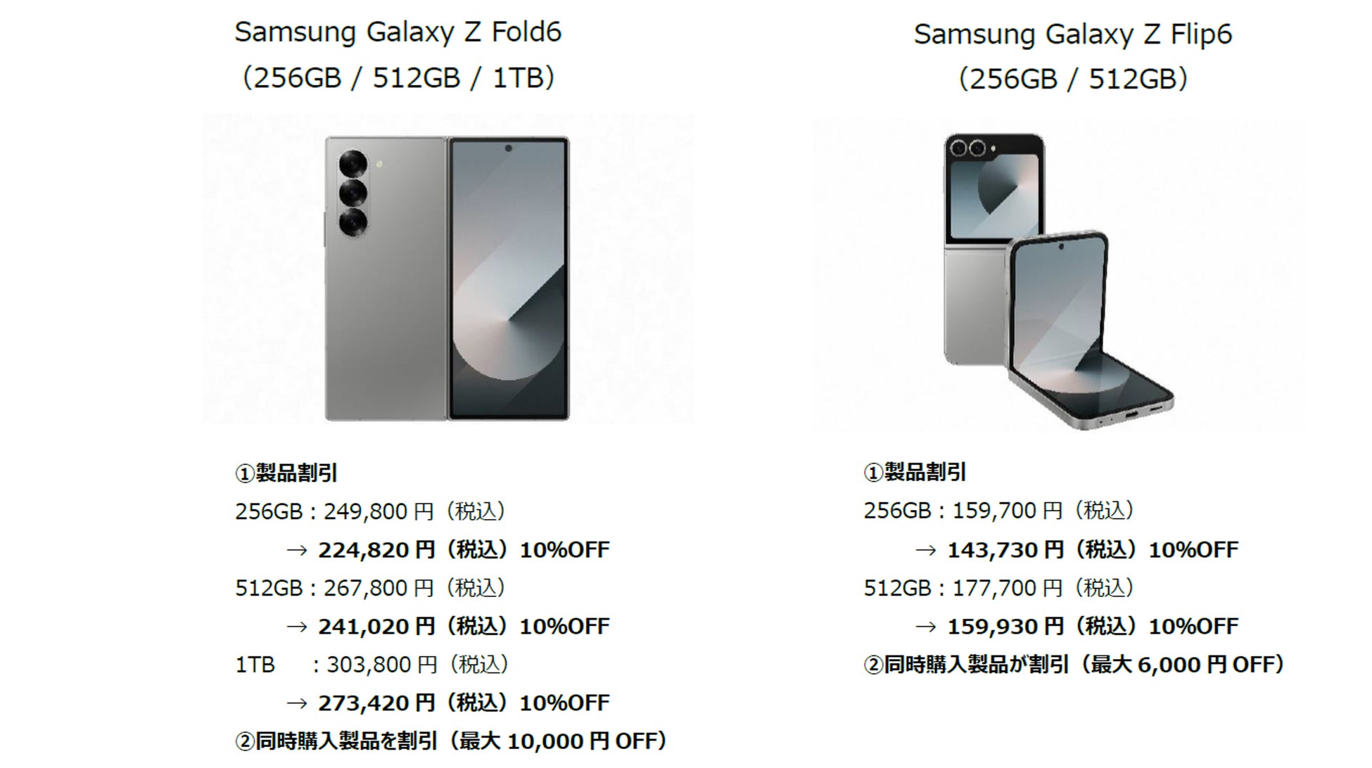 「Samsung Galaxy Z Fold6」と「Samsung Galaxy Z Flip6」が10%OFF、