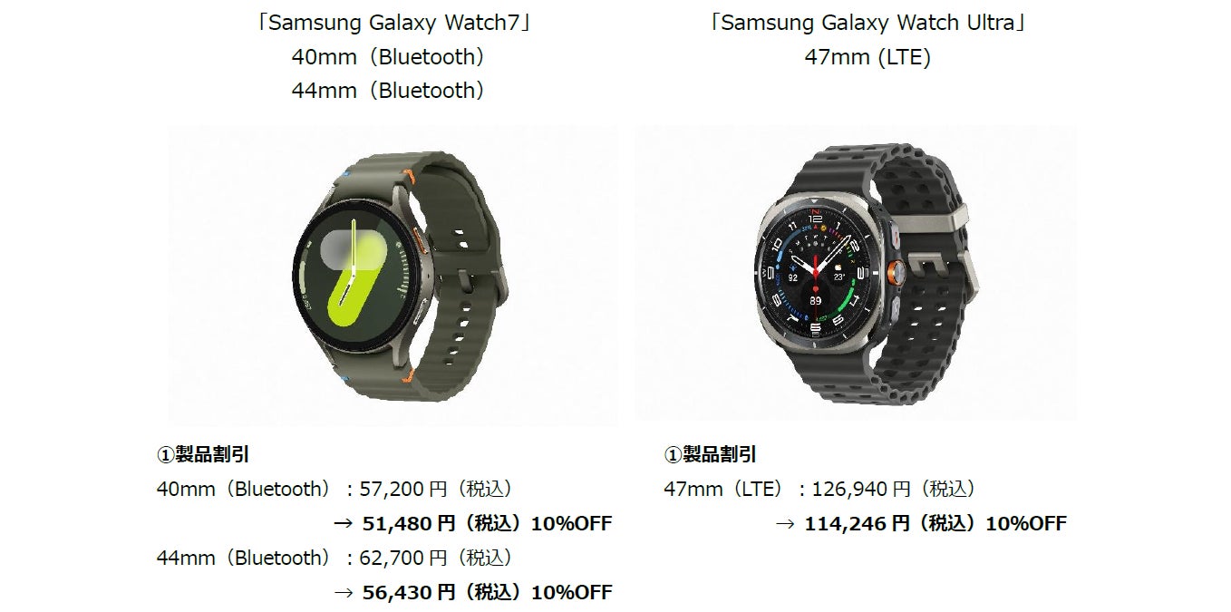 ※対象製品:「Samsung Galaxy S24」、「Samsung Galaxy S24 Ultra」、「Samsung Galaxy Tab S9 FE」、「Samsung Galaxy Watch7」、「Samsung Galaxy Watch6 Classic」