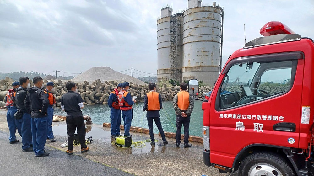 この度は、販売代理店2社と共に鳥取県の漁港におきまして、最先端の水中ドローン「FIFISH W6」を使用し、鳥取県東部広域行政管理組合消防局との合同訓練を実施しました。
