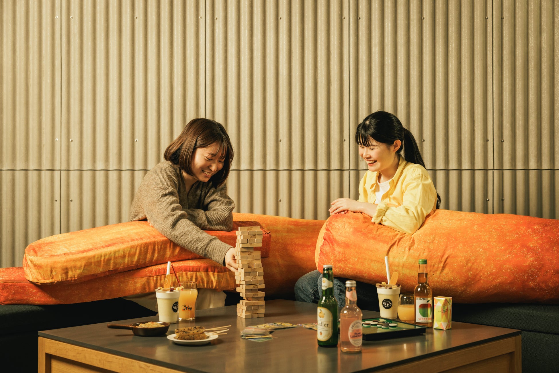 コンセプトは「居酒屋以上 旅未満 みんなでルーズに過ごすホテル」。いつもの顔ぶれで、飲み会よりも素敵に。旅よりも気軽に。遊びゴコロあふれる客室とラウンジに、24時間営業のカフェ。飲食物の持ち込み推奨で、朝食とチェックアウトは遅れてもOK。その日の気分で楽しむ「お出かけ」に寄り添います。