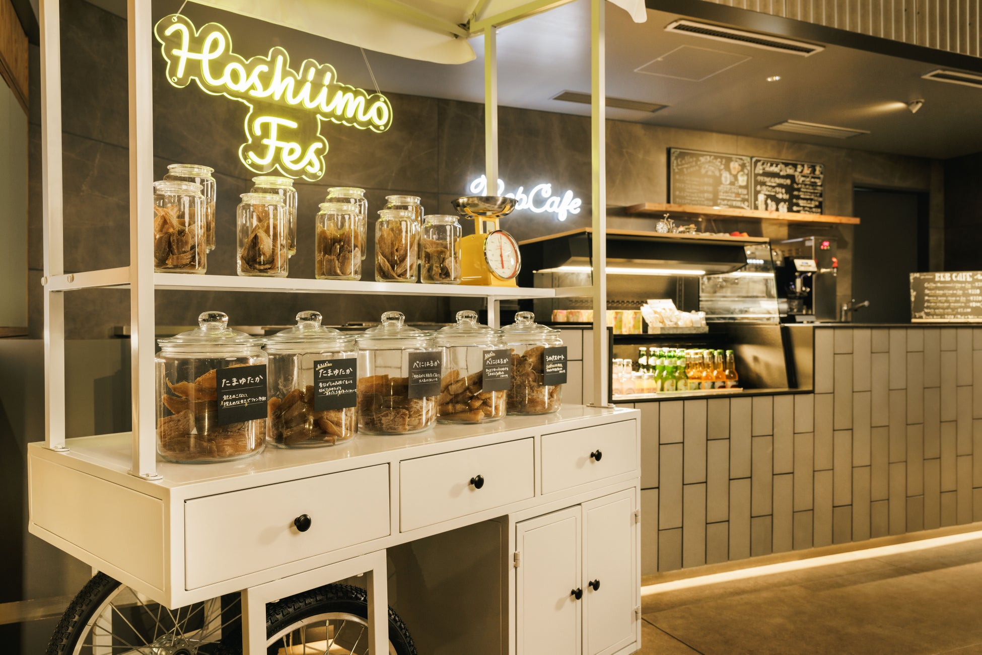 イベント期間中は、「TAMARIBA」に「選べるほしいもスタンド」が登場します。干し芋に利用される代表的なさつまいもの品種と製造方法からスタッフおすすめの5種類をセレクト。製造方法は、さつまいもを平たく切って作る平干しと丸々一本をそのまま使って作る丸干しの2種類。品種はべにはるか、たまゆたか、シルクスイートの3種類を用意します。品種と製造方法の5種類の組み合わせを食べ比べ、自分好みの干し芋を見つけられます。べにはるかはねっとりとして濃厚な甘みが特徴の人気品種。たまゆたかは素朴な甘さで昔懐かしい味わい、シルクスイートはさっぱりとした味わいと滑らかな舌触りが特徴です。また、購入した干し芋は「TAMARIBA」に用意されたオーブントースターでほんのり焼き目を付けることで、よりおいしく楽しむことができます。