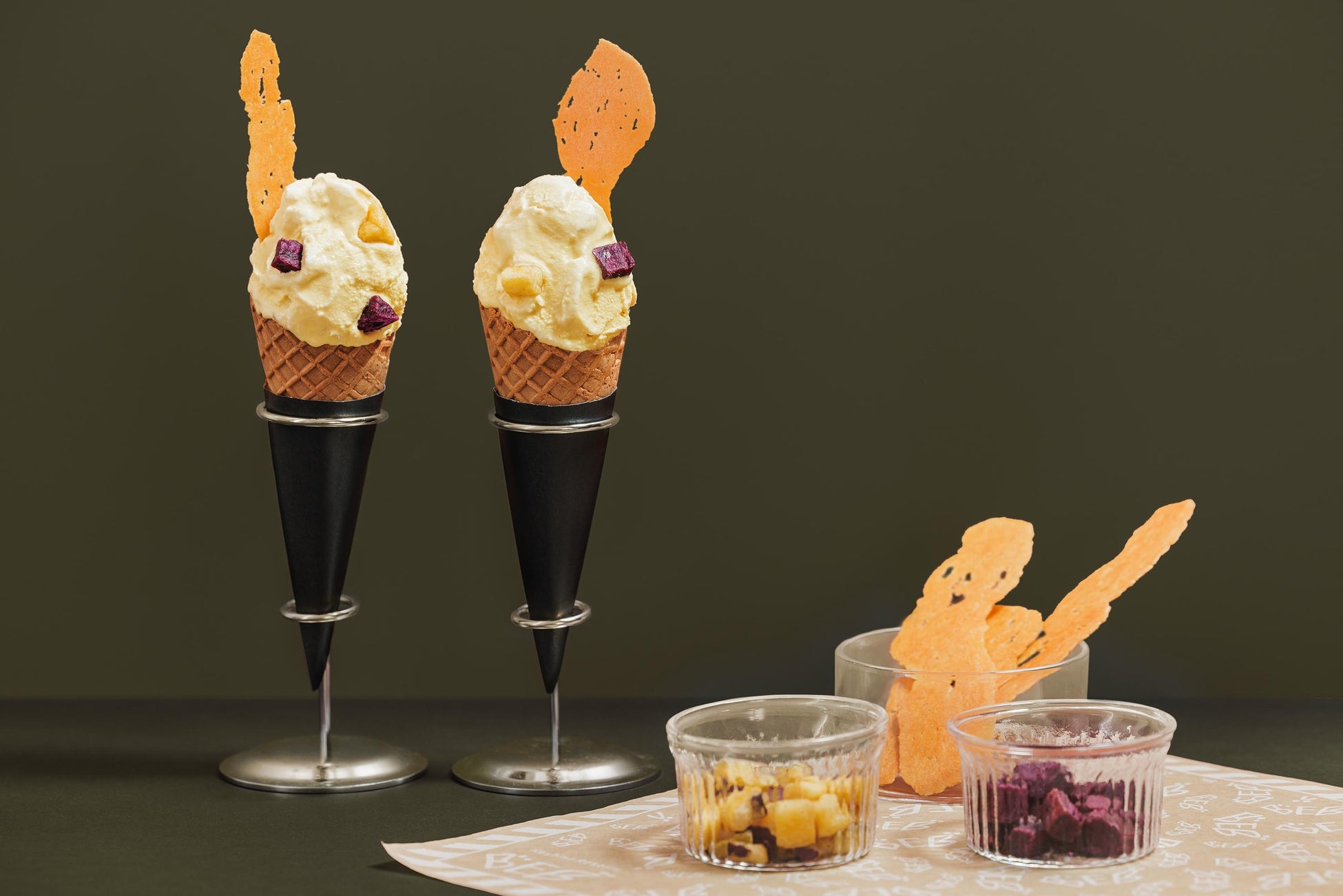ほしいもフェスのメニューに3つの新メニューが登場します。昨年も大好評だった「ほしいもフラッペ」に加えて、干し芋が練り込まれた「ほしいもジェラート」、丸干し芋(*3)とチーズの組み合わせが新しい「とろ〜りハニーチーズ丸ほしいも」、大学芋のように甘い蜜がかかったお手軽スイーツ「大学ほしいも棒」の3種類を新たに販売します。4種類のメニューを通して、干し芋の新しい味わいを楽しめます。