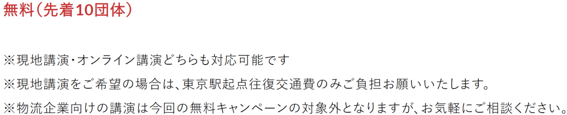※物流企業向けの講演は今回の無料キャンペーン対象外となりますが、お気軽にご相談ください。