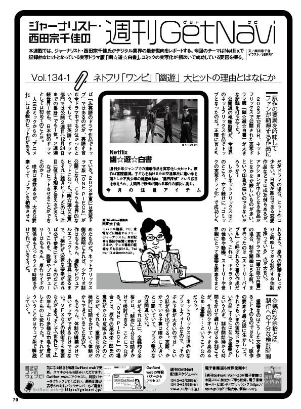 ジャーナリスト西田宗千佳さんの連載「週刊GetNavi」では、Netflixで記録的なヒットとなっている実写ドラマ版「幽☆遊☆白書」「ONE PIECE」に注目。