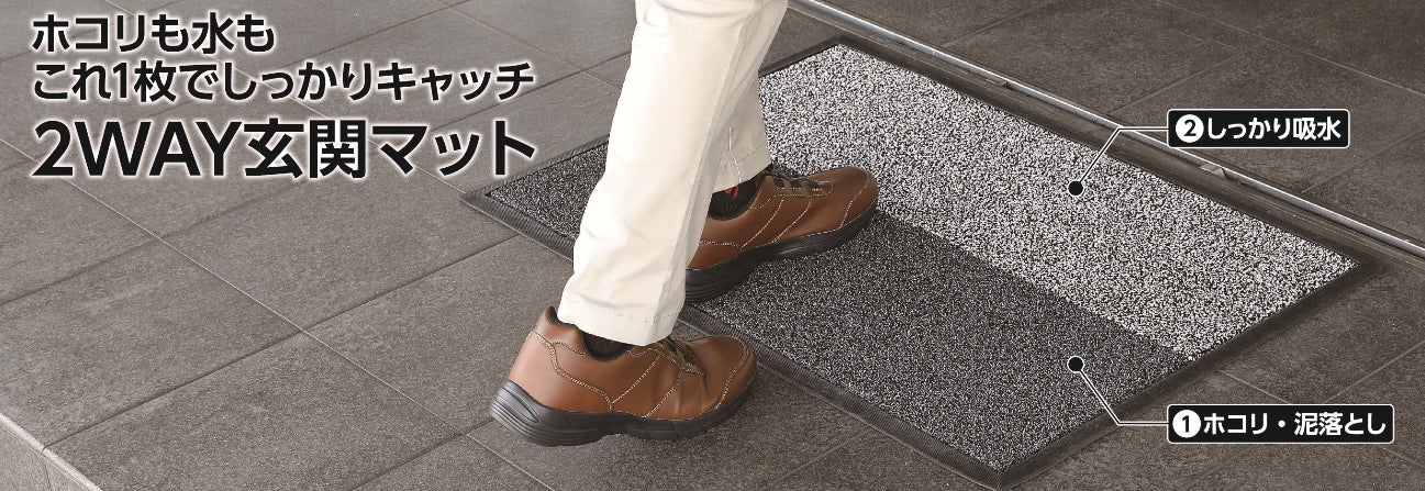 ・手前のマットでホコリや泥を落とし、奥のマットでしっかり吸水できる2Way仕様。