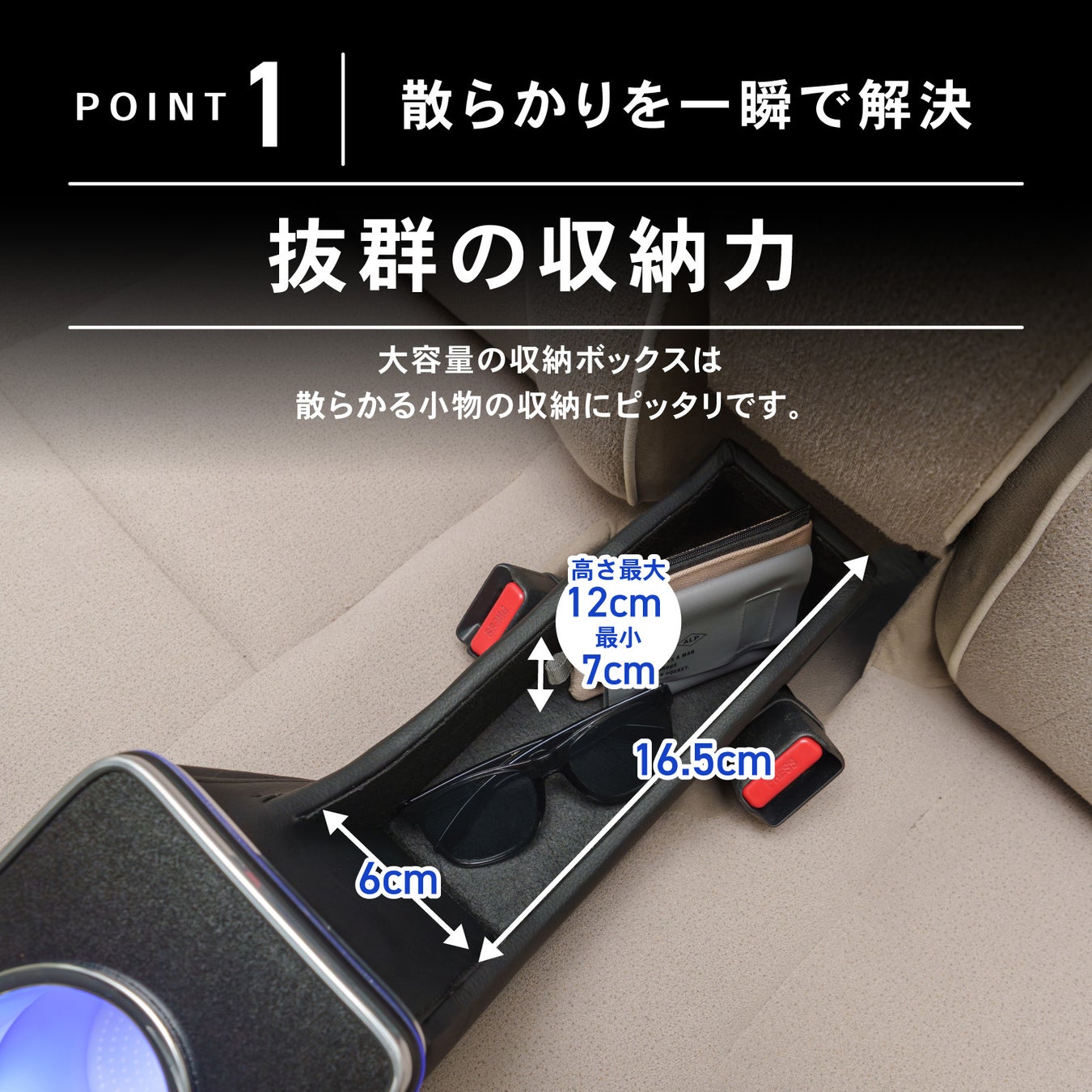 ムーヴキャンバス専用 LEDコンソールボックス。タイプA、タイプCシガーソケットを完備。夜も安心のLED搭載。大容量の収納ボックスは散らかりを一瞬で解決!LA850S LA860S対応