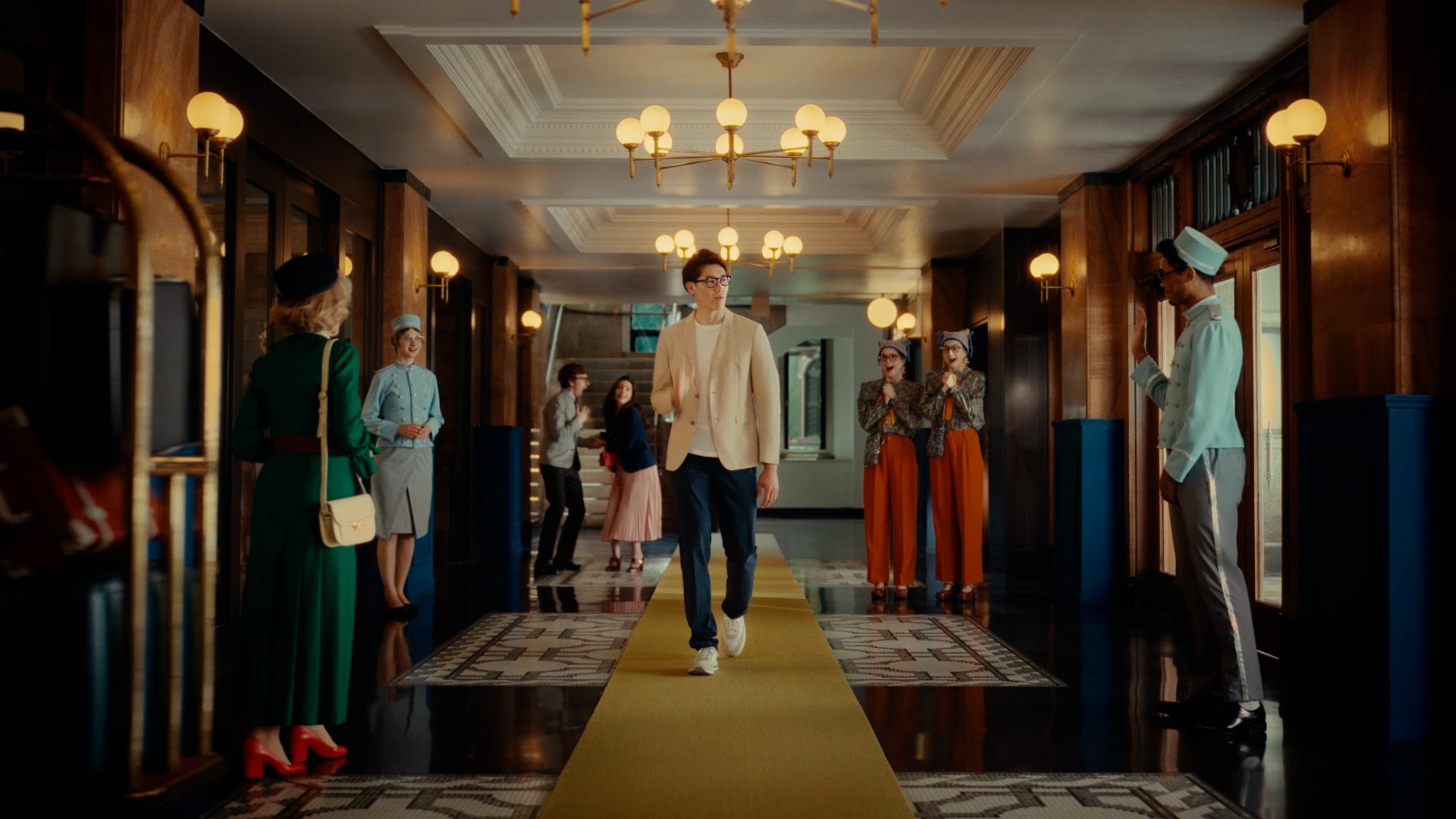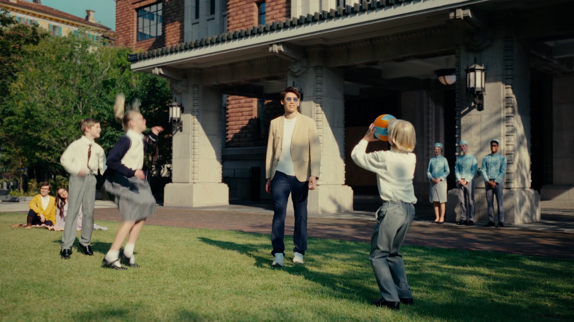 ホテルのロビーを歩くメガネ姿の石川祐希選手。ポーターが横切ると場面はホテルの庭になり、調光サングラス姿に早変わり。遊んでいた子どもたちの方からボールが飛んでくると、優しくトスをする祐希選手。場面が変わり街を歩く祐希選手に“Andiamo!(行くよ!)”と話しかける後ろ姿。そこにはサングラス姿でボールを持った石川真佑選手が。“Bene, alleniamoci !(さあ、練習するか!)”と応える祐希選手。街を歩く祐希選手と真佑選手。二人は最後にハイタッチを交わします。